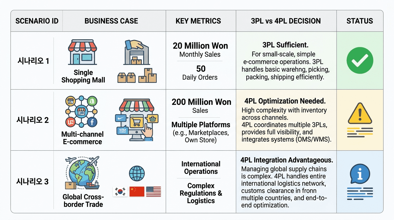 시나리오별 3PL vs 4PL 비교
