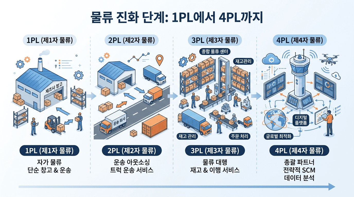 물류 형태의 진화: 1PL부터 4PL까지